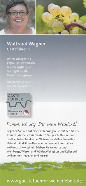 Gästeführerin "Weinerlebnis Franken" bin ich bereit seit 1998.